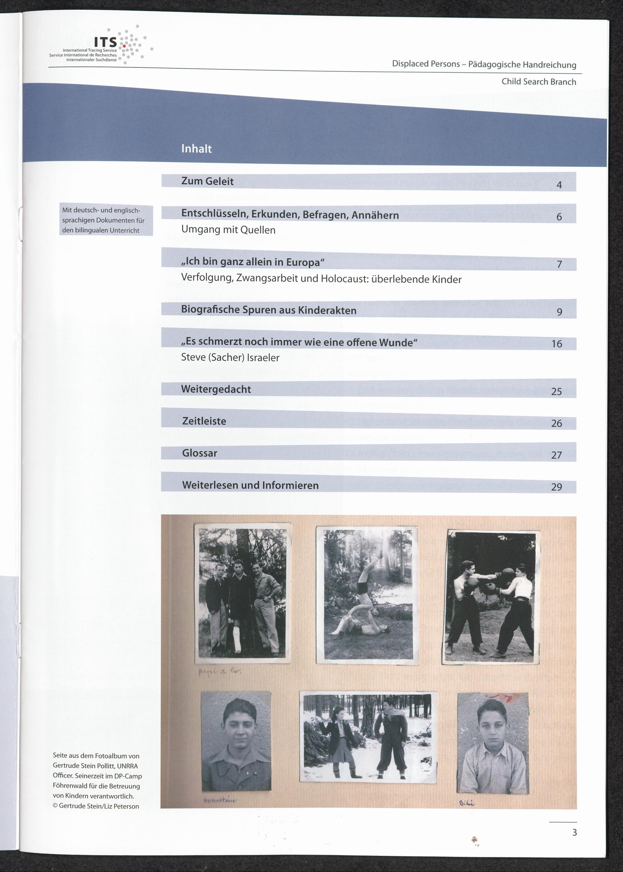 Pädagogische Handreichungen - Displaced Persons Heft 3. Child Search Branch Inhaltsverzeichnis