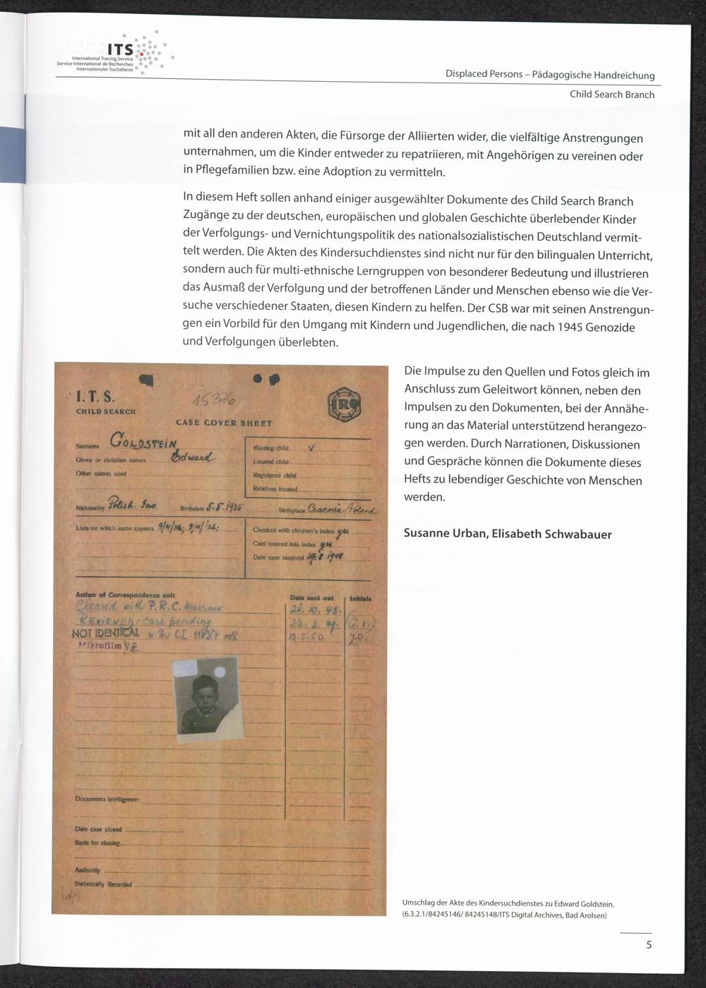 Pädagogische Handreichungen - Displaced Persons Heft 3. Child Search Branch Zum Geleit