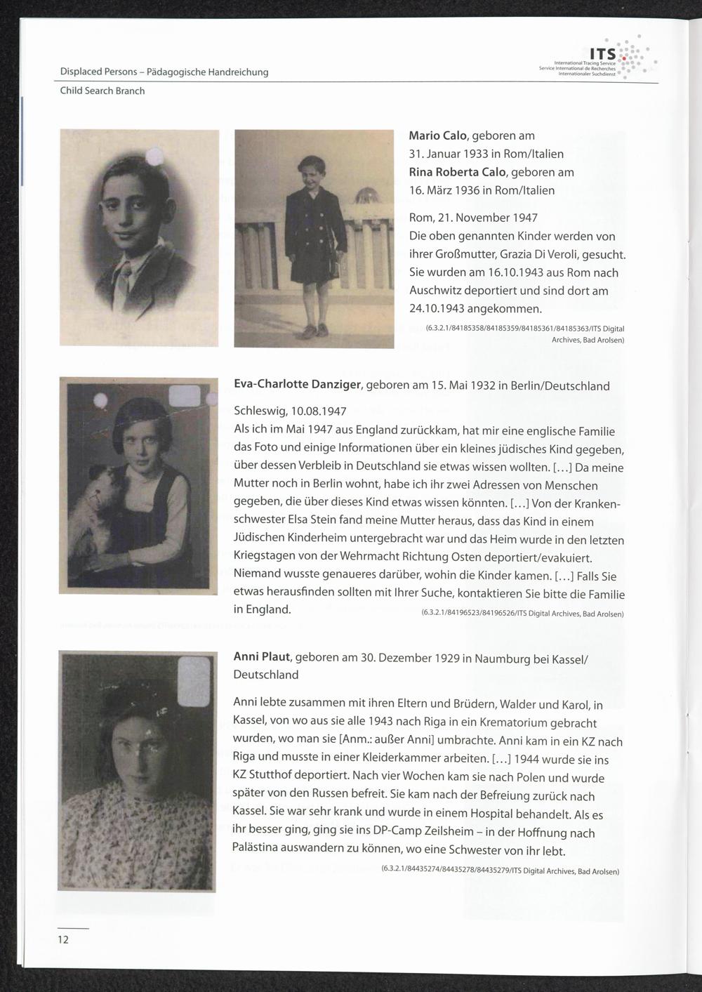 Pädagogische Handreichungen - Displaced Persons Heft 3. Child Search Branch Biografische Spuren aus Kinderakten