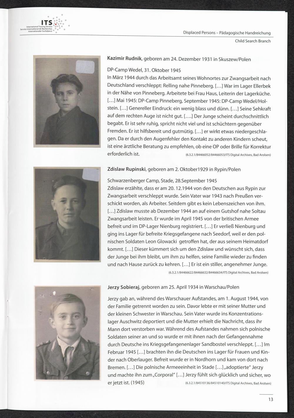 Pädagogische Handreichungen - Displaced Persons Heft 3. Child Search Branch Biografische Spuren aus Kinderakten