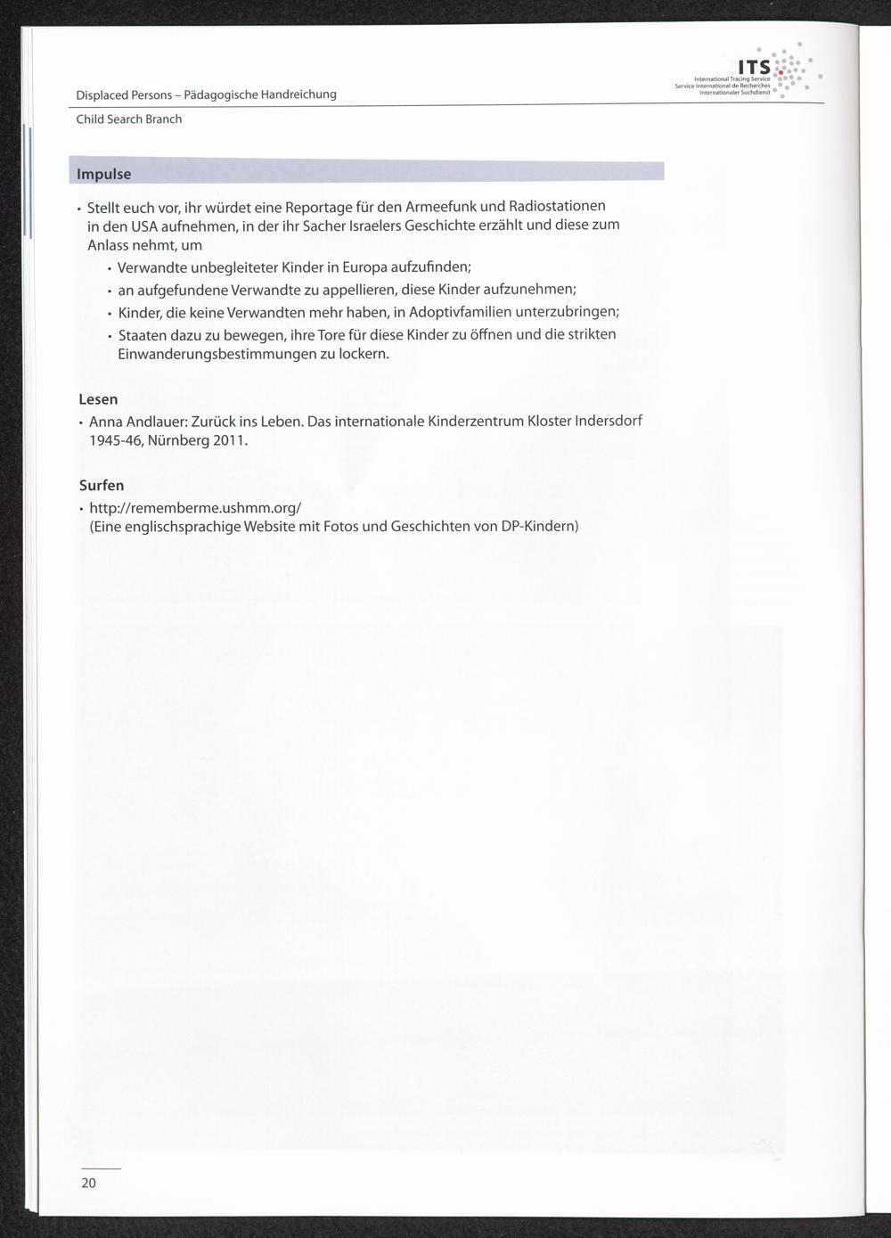 Pädagogische Handreichungen - Displaced Persons Heft 3. Child Search Branch "Es schmerzt noch immer wie eine offene Wunde"