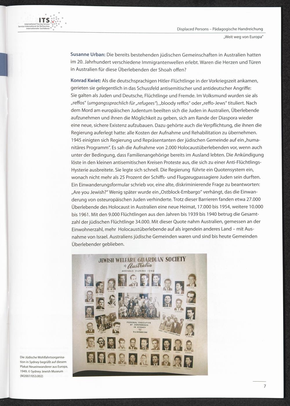 Pädagogische Handreichungen - Displaced Persons Heft 4. "Weit weg von Europa" oder "Das Leben in Australien war ganz anders" "Überlebende des Holocaust sind Australier geworden und Juden geblieben"
