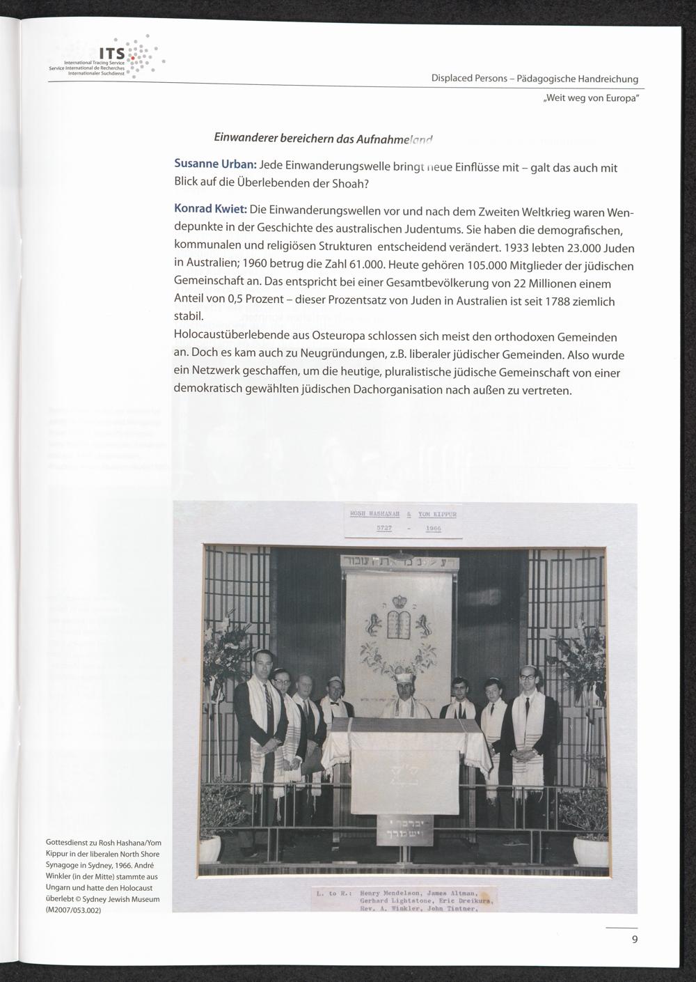 Pädagogische Handreichungen - Displaced Persons Heft 4. "Weit weg von Europa" oder "Das Leben in Australien war ganz anders" "Überlebende des Holocaust sind Australier geworden und Juden geblieben"