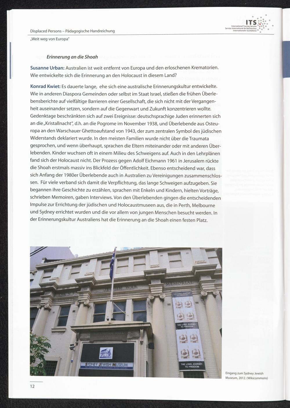 Pädagogische Handreichungen - Displaced Persons Heft 4. "Weit weg von Europa" oder "Das Leben in Australien war ganz anders" "Überlebende des Holocaust sind Australier geworden und Juden geblieben"