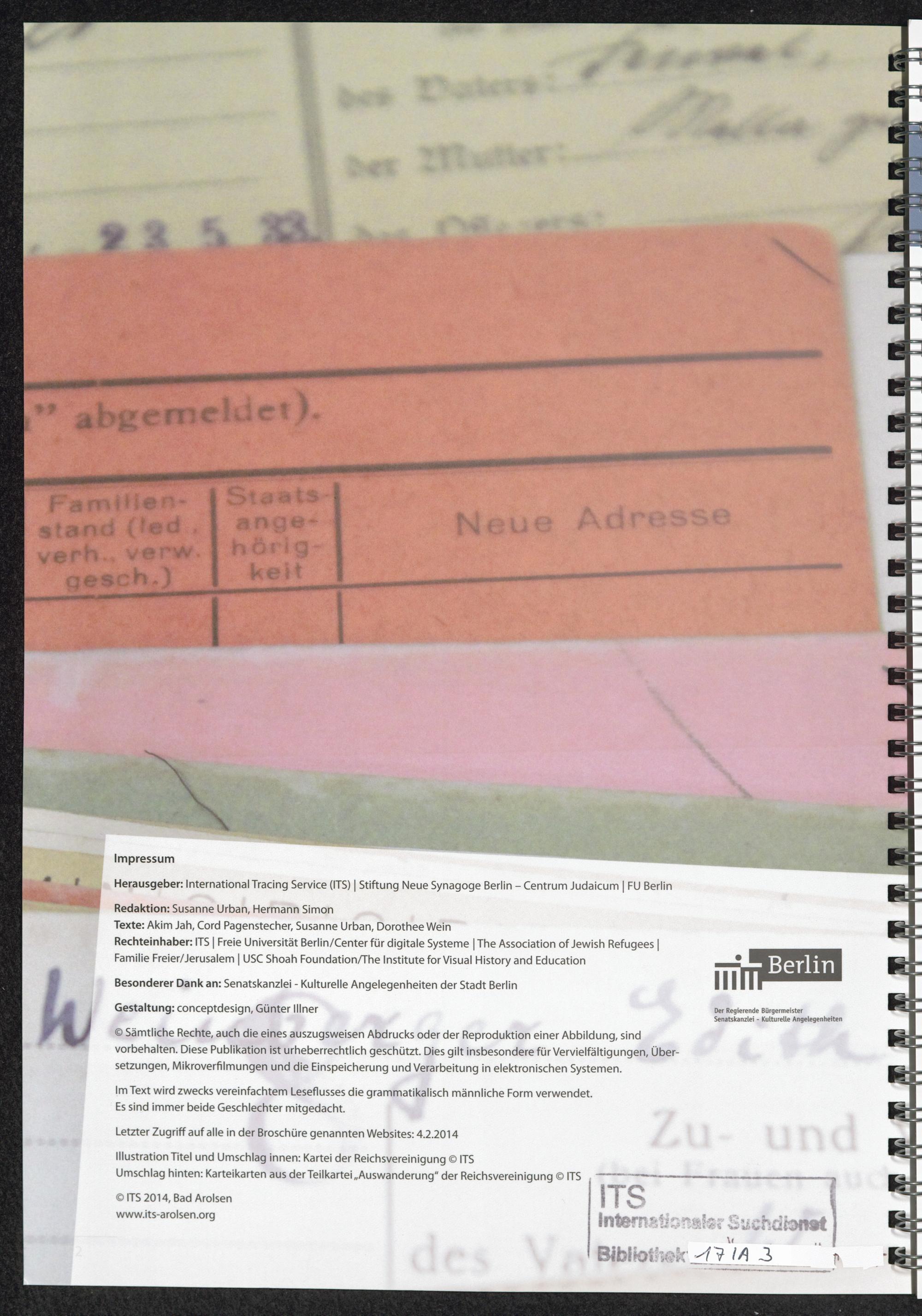 Karteikarten und Menschen - Fenster in die Vergangenheit : Die Kartei der Reichsvereinigung der Juden in Deutschland im Archiv des International Tracing Service (ITS) / International Tracing Service (ITS)