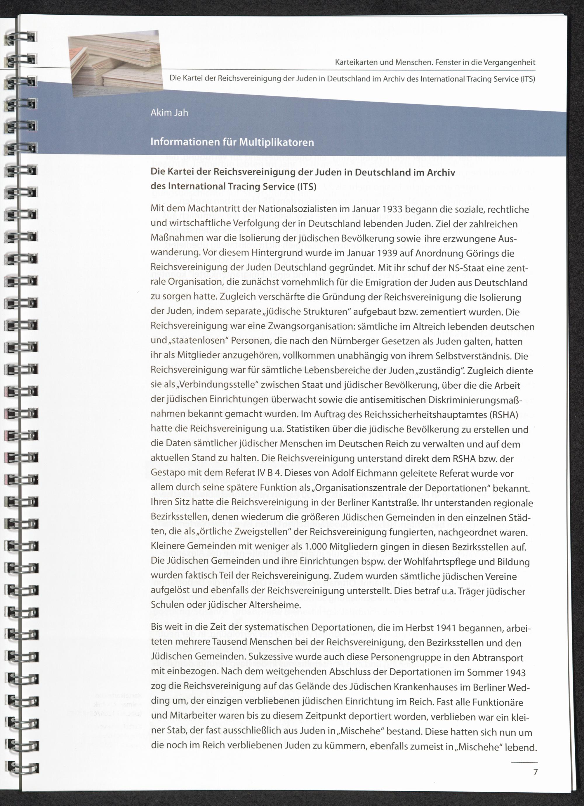 Karteikarten und Menschen - Fenster in die Vergangenheit : Die Kartei der Reichsvereinigung der Juden in Deutschland im Archiv des International Tracing Service (ITS) / International Tracing Service (ITS)