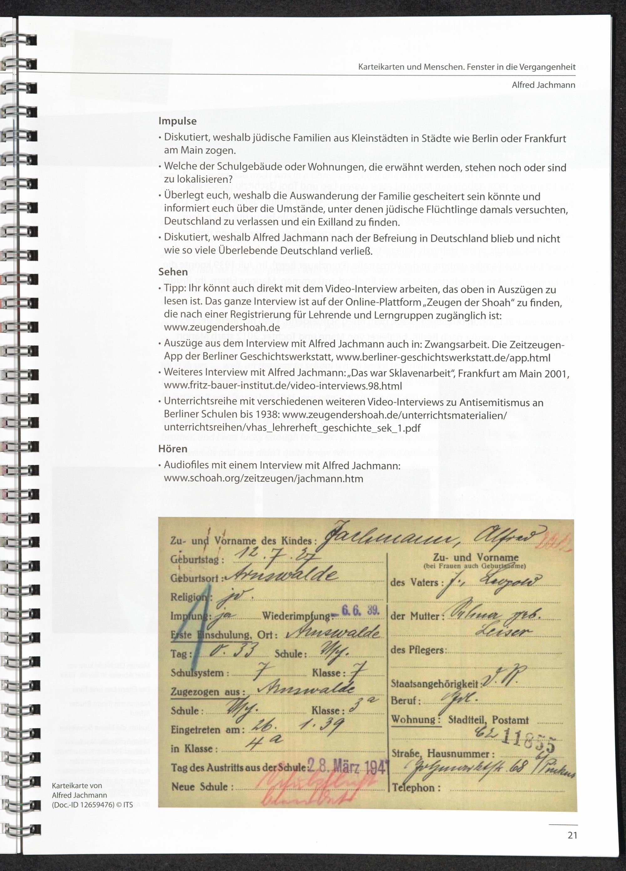 Karteikarten und Menschen - Fenster in die Vergangenheit : Die Kartei der Reichsvereinigung der Juden in Deutschland im Archiv des International Tracing Service (ITS) / International Tracing Service (ITS)