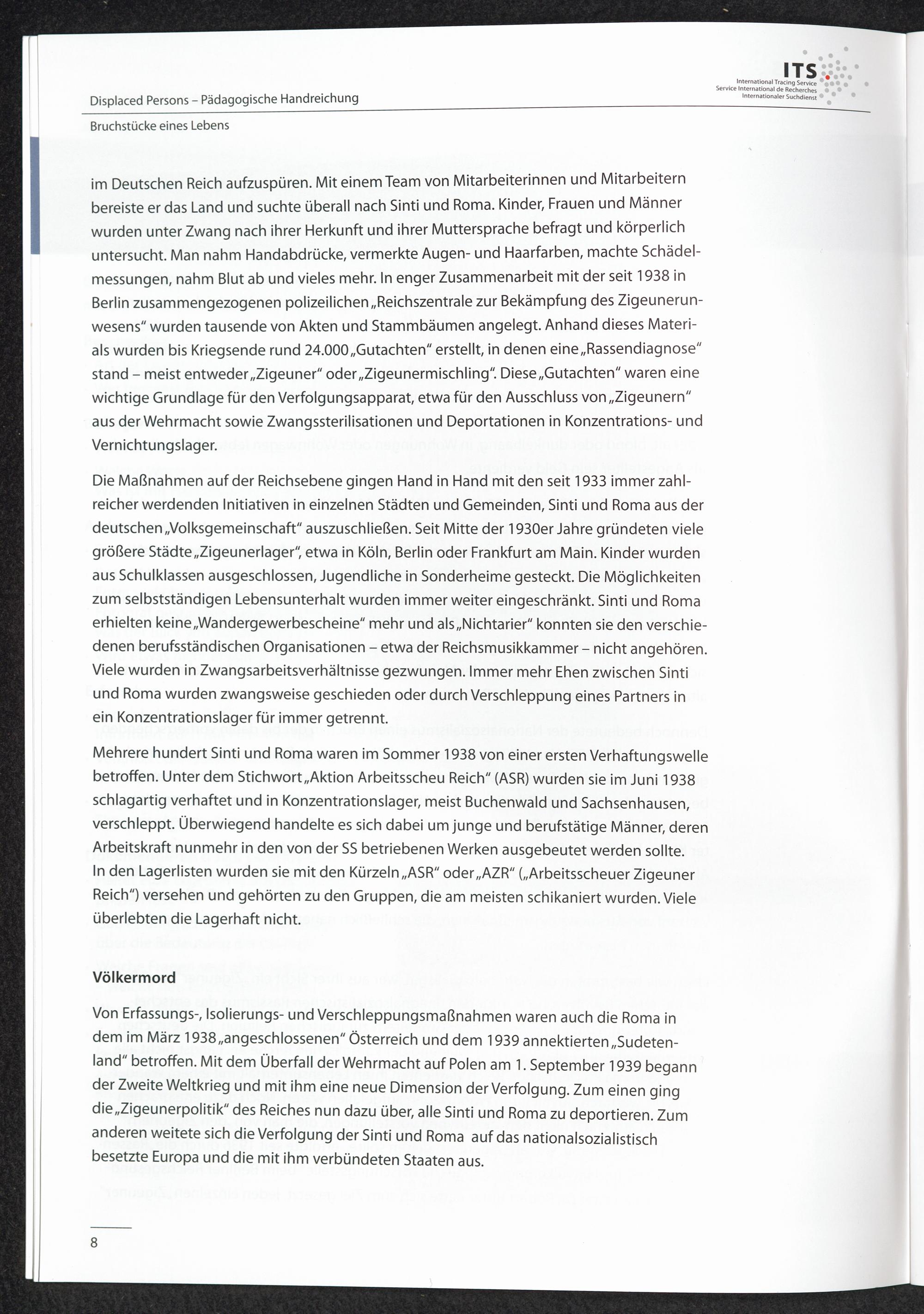 Pädagogische Handreichungen - Displaced Persons Heft 1. Bruchstücke eines Lebens Verfolgung von Sinti und Roma im Nationalsozialismus