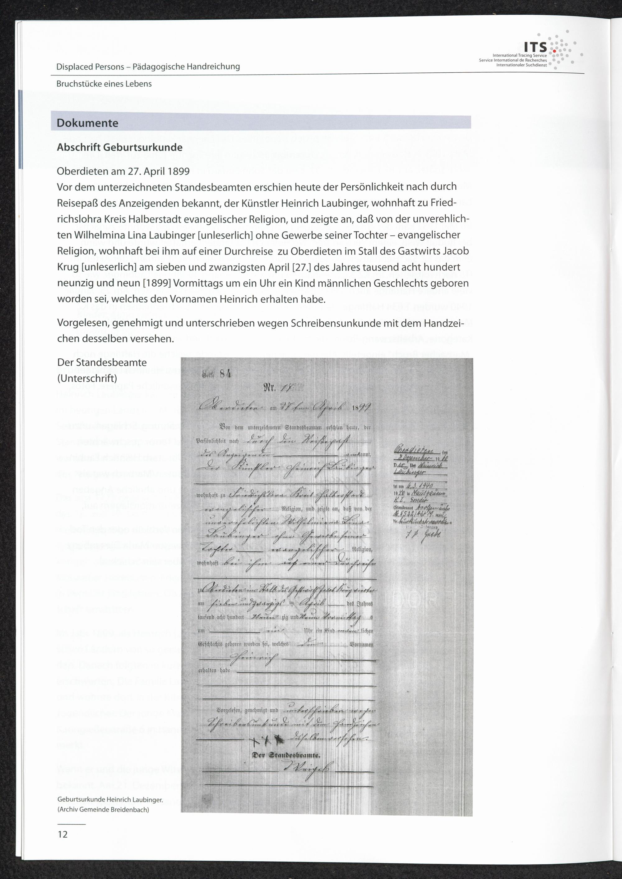 Pädagogische Handreichungen - Displaced Persons Heft 1. Bruchstücke eines Lebens Heinrich Laubinger - eine Spurensuche