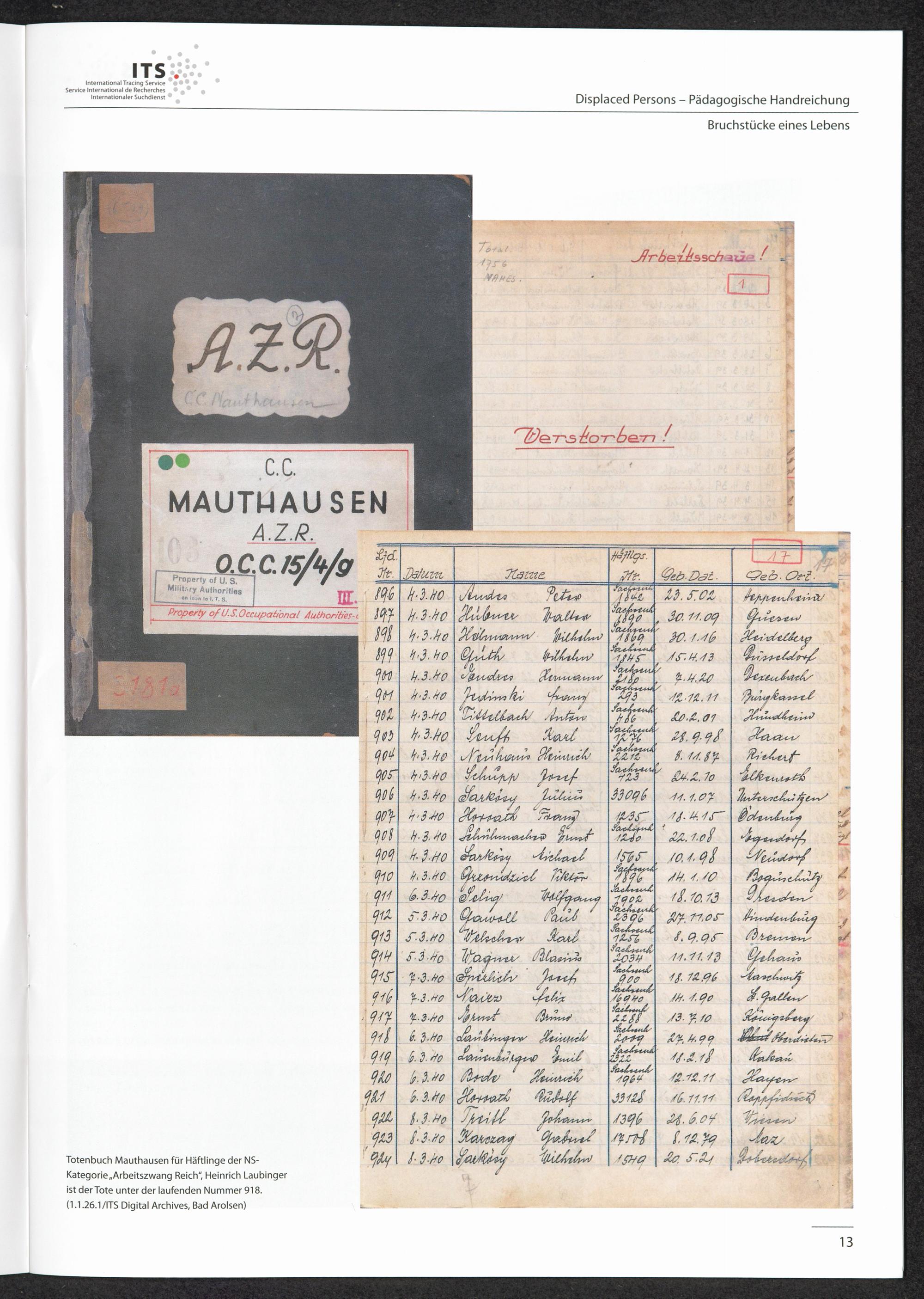 Pädagogische Handreichungen - Displaced Persons Heft 1. Bruchstücke eines Lebens Heinrich Laubinger - eine Spurensuche