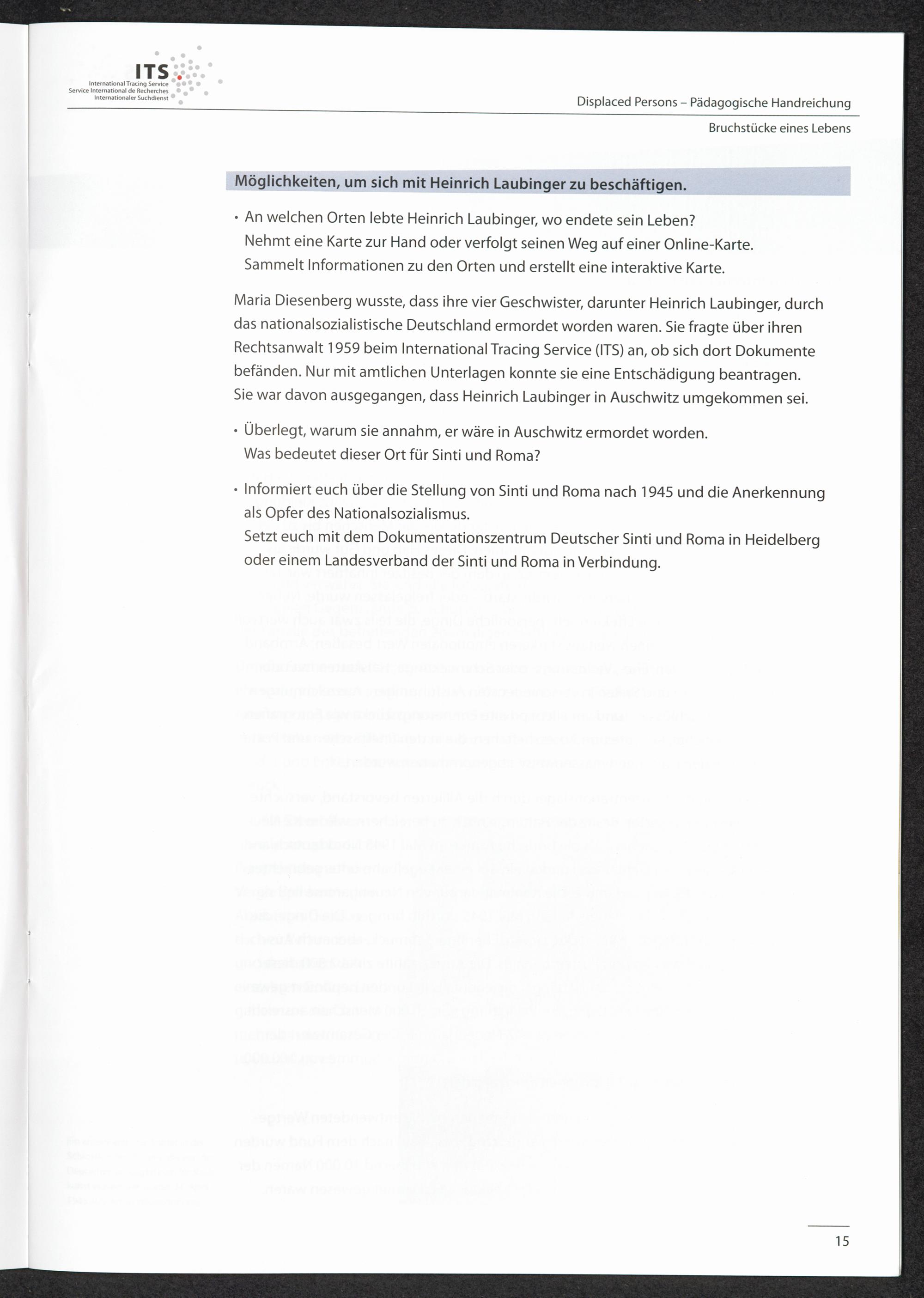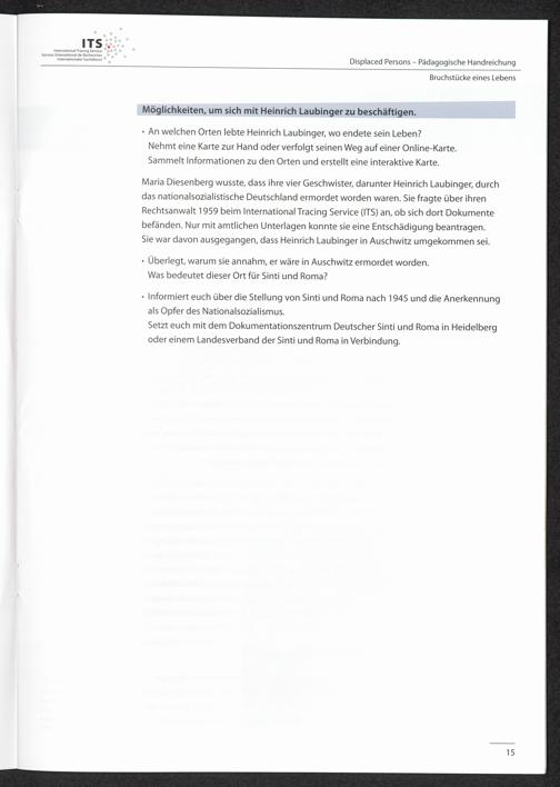 Pädagogische Handreichungen - Displaced Persons Heft 1. Bruchstücke eines Lebens Heinrich Laubinger - eine Spurensuche