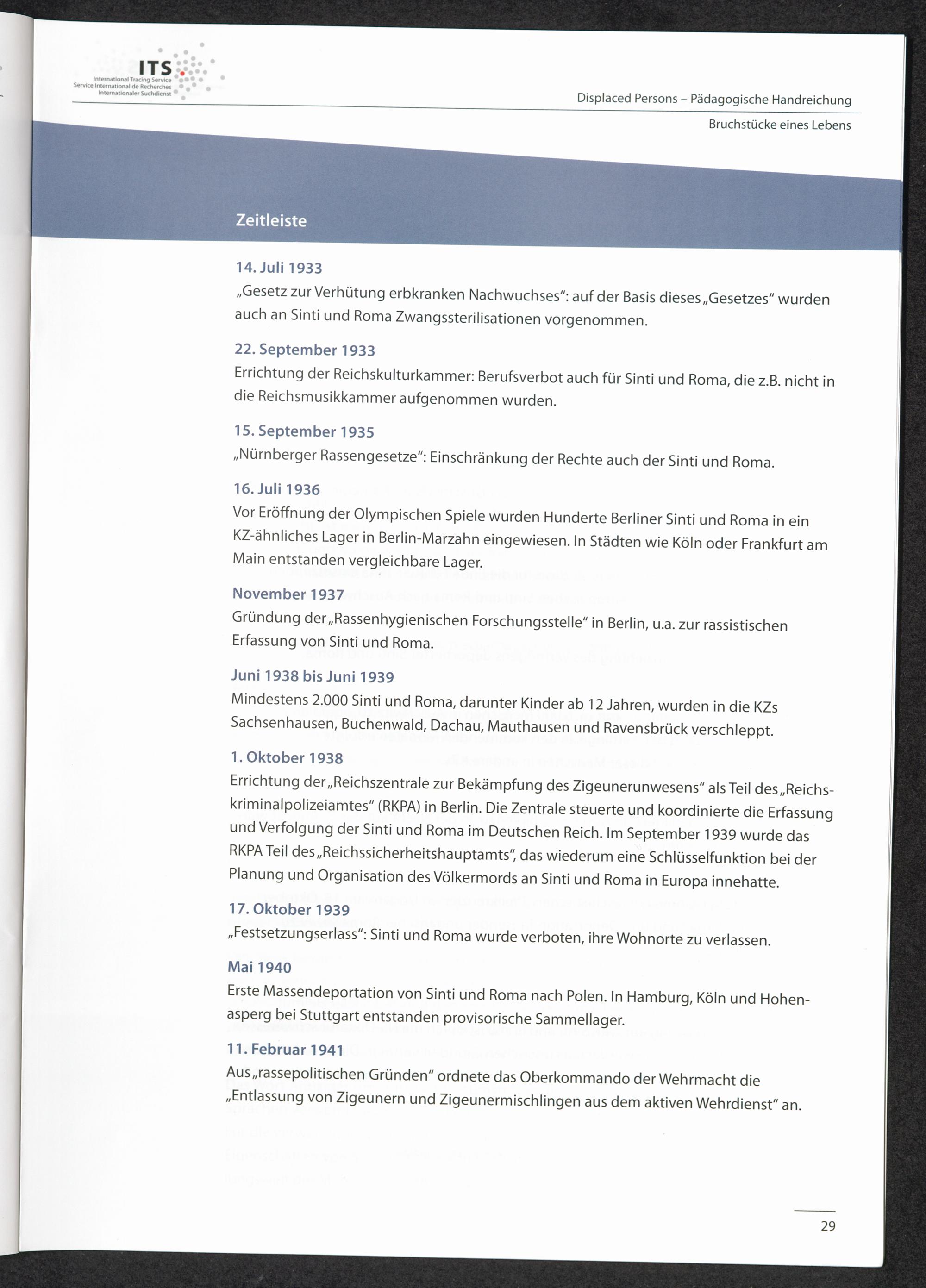 Pädagogische Handreichungen - Displaced Persons Heft 1. Bruchstücke eines Lebens Zeitleiste