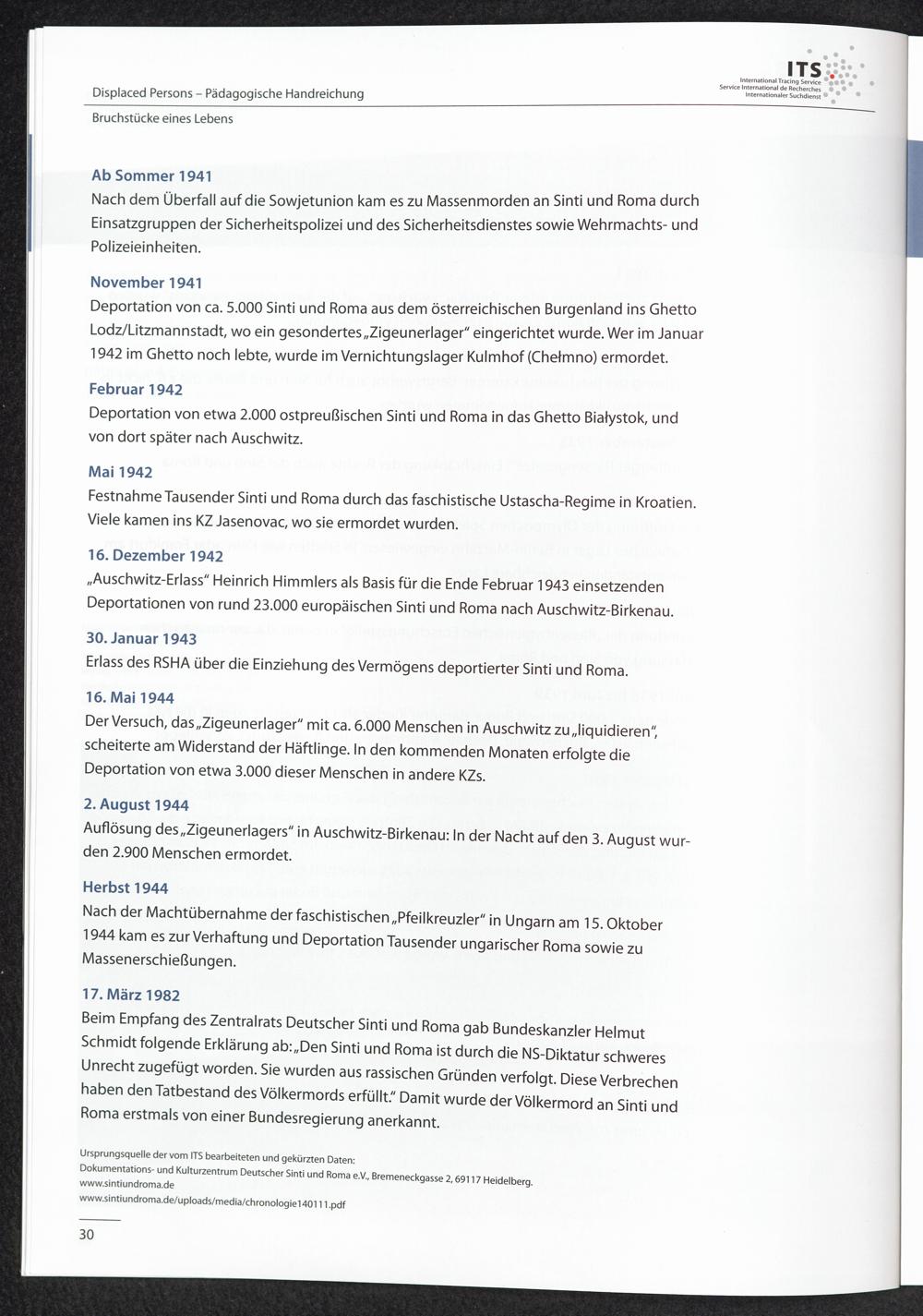 Pädagogische Handreichungen - Displaced Persons Heft 1. Bruchstücke eines Lebens Zeitleiste