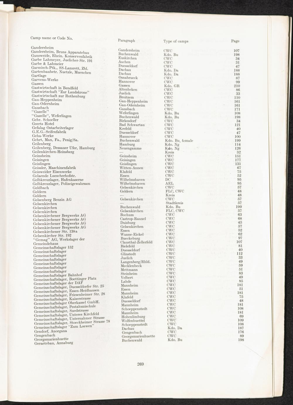 Catalogue of Camps and Prisons in Germany and german-occupied Territories Sept. 1st, 1939 - May 8th, 1945 : Vol. II