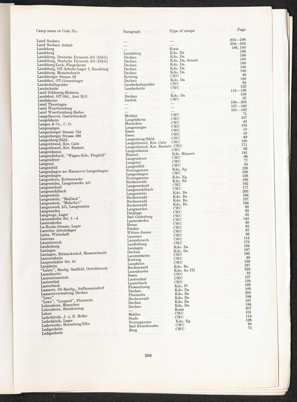 Catalogue of Camps and Prisons in Germany and german-occupied Territories Sept. 1st, 1939 - May 8th, 1945 : Vol. II