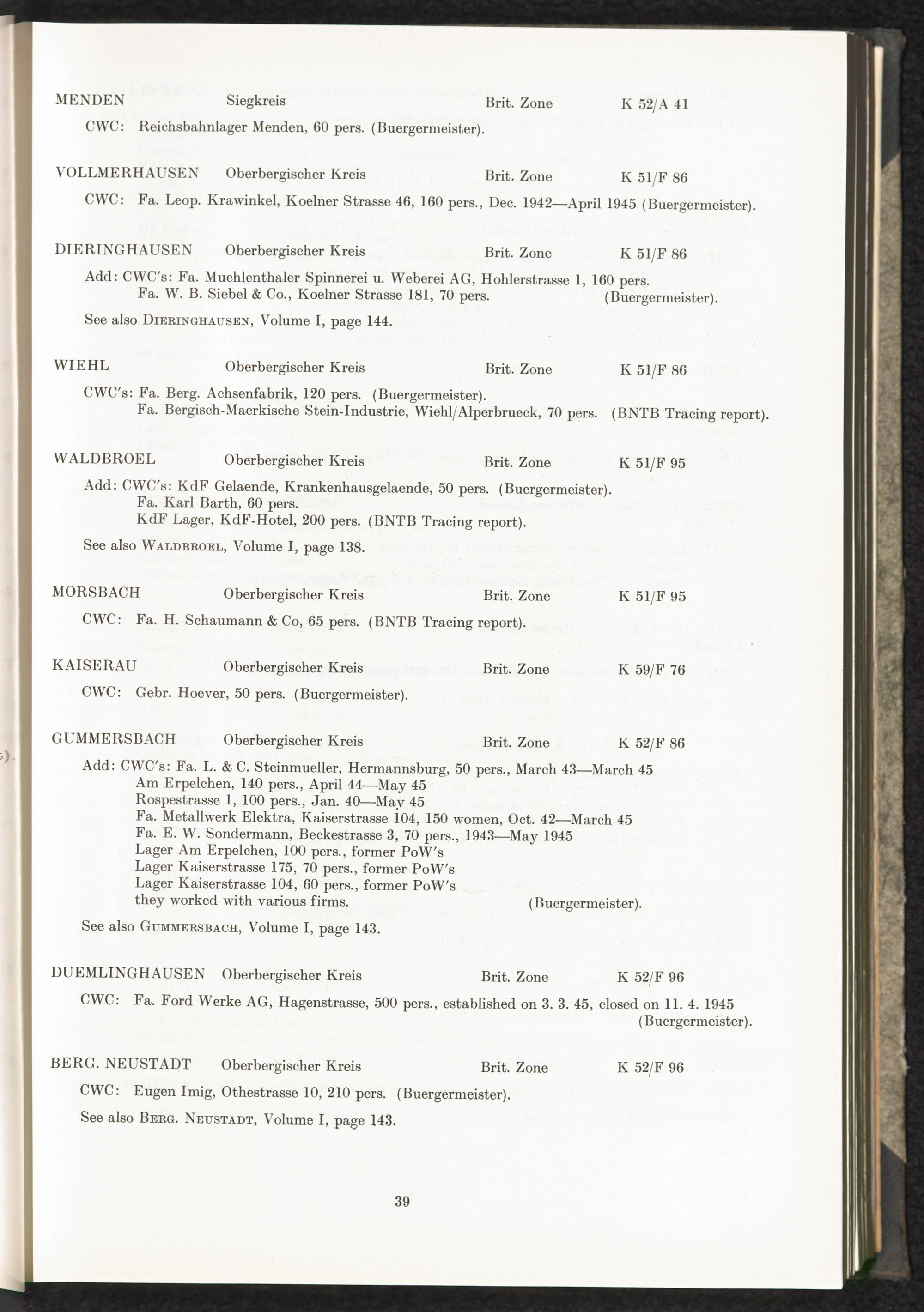Catalogue of Camps and Prisons in Germany and german-occupied Territories Sept. 1st, 1939 - May 8th, 1945 : Vol. II and Supplement