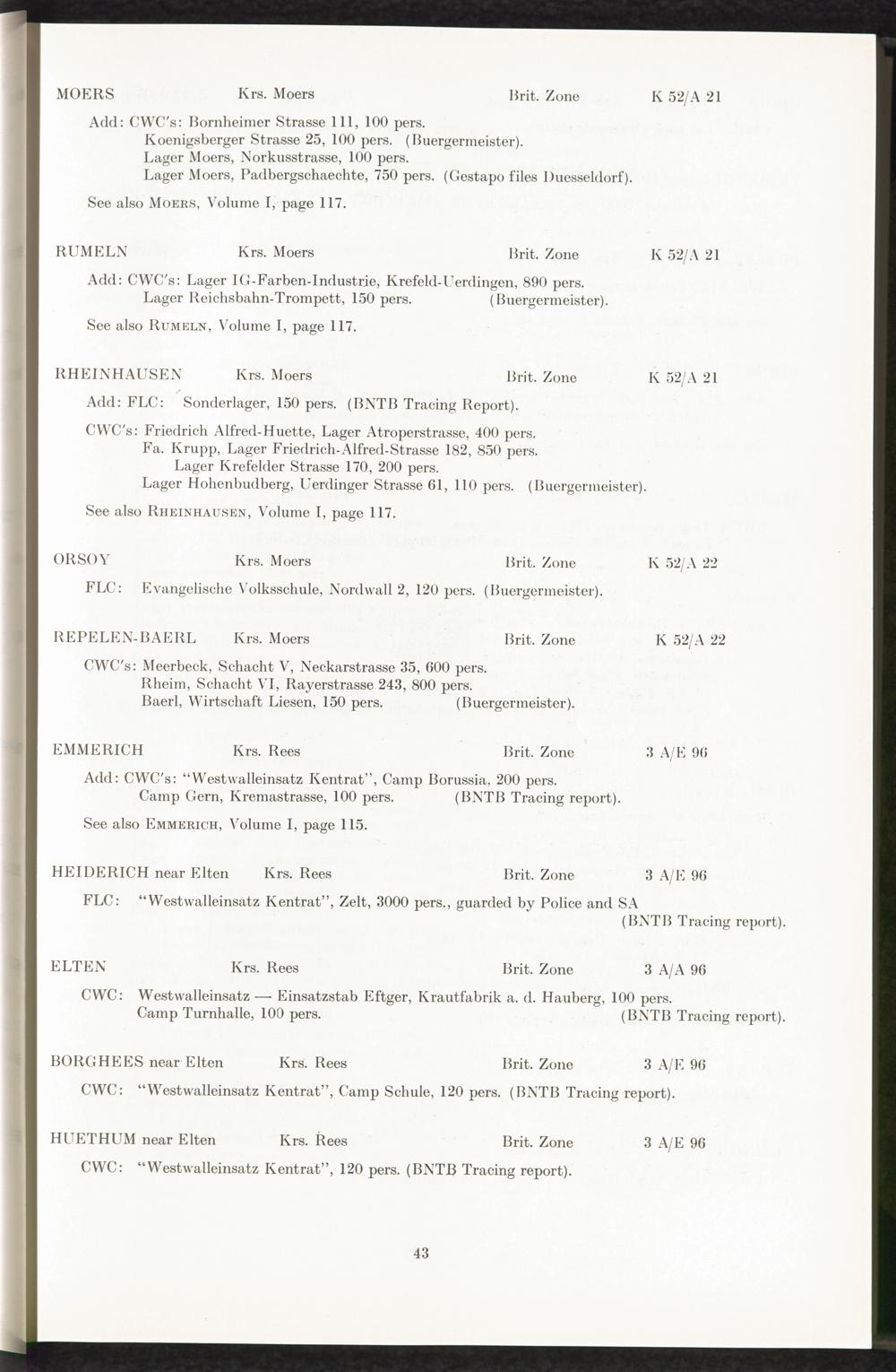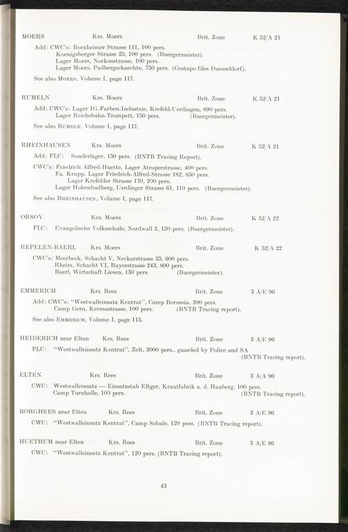 Catalogue of Camps and Prisons in Germany and german-occupied Territories Sept. 1st, 1939 - May 8th, 1945 : Vol. II and Supplement