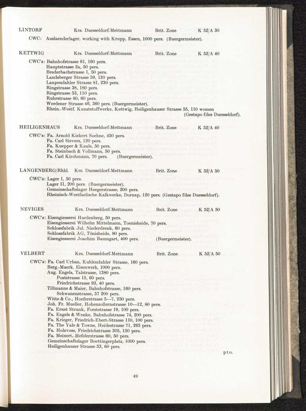 Catalogue of Camps and Prisons in Germany and german-occupied Territories Sept. 1st, 1939 - May 8th, 1945 : Vol. II and Supplement