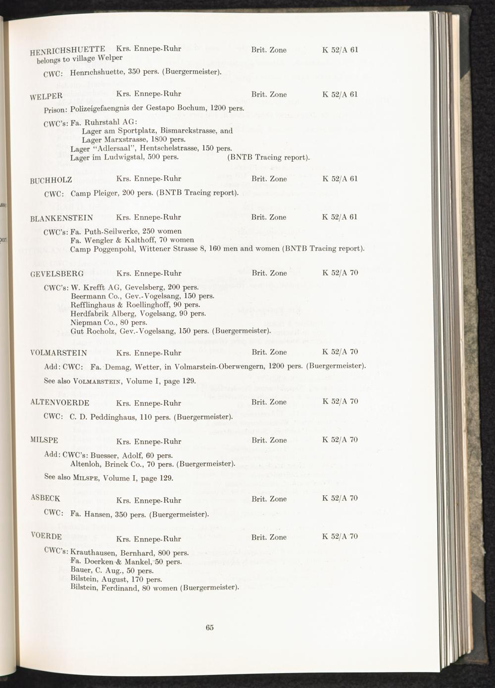 Catalogue of Camps and Prisons in Germany and german-occupied Territories Sept. 1st, 1939 - May 8th, 1945 : Vol. II and Supplement