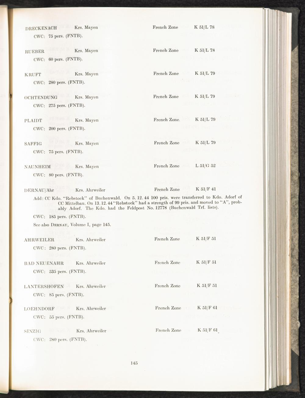 Catalogue of Camps and Prisons in Germany and german-occupied Territories Sept. 1st, 1939 - May 8th, 1945 : Vol. II and Supplement