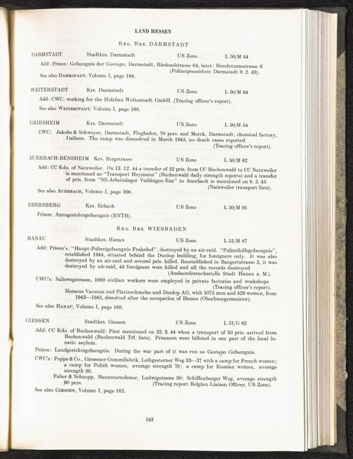 Catalogue of Camps and Prisons in Germany and german-occupied Territories Sept. 1st, 1939 - May 8th, 1945 : Vol. II and Supplement