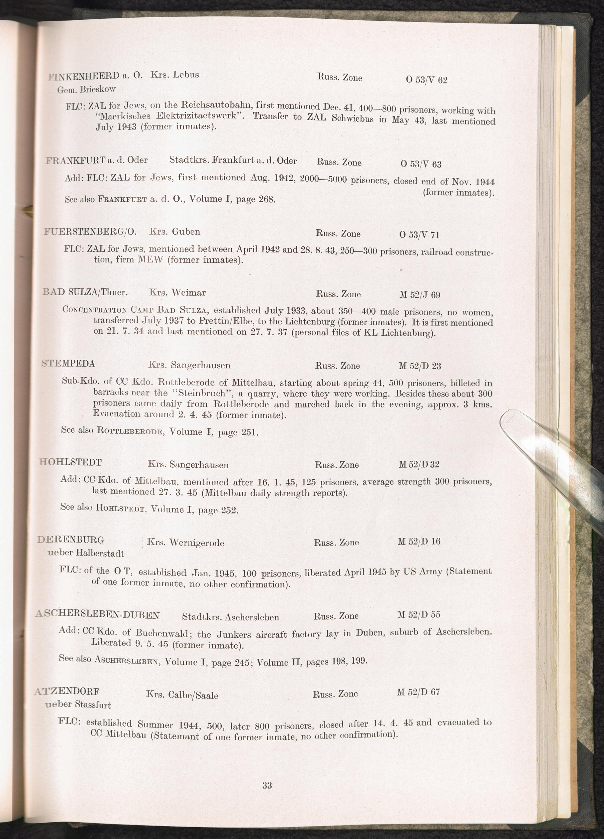 Catalogue of Camps and Prisons in Germany and german-occupied Territories Sept. 1st, 1939 - May 8th, 1945 : Vol. II and Supplement