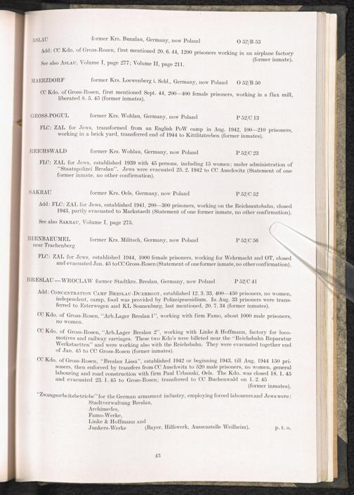 Catalogue of Camps and Prisons in Germany and german-occupied Territories Sept. 1st, 1939 - May 8th, 1945 : Vol. II and Supplement