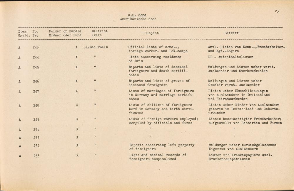 Catalogue of Records held by the International Tracing Service of the Allied High Commission For Germany at Arolsen : Vol. II