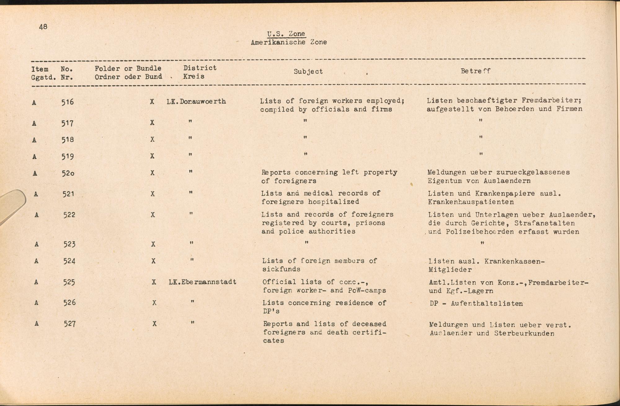 Catalogue of Records held by the International Tracing Service of the Allied High Commission For Germany at Arolsen : Vol. II