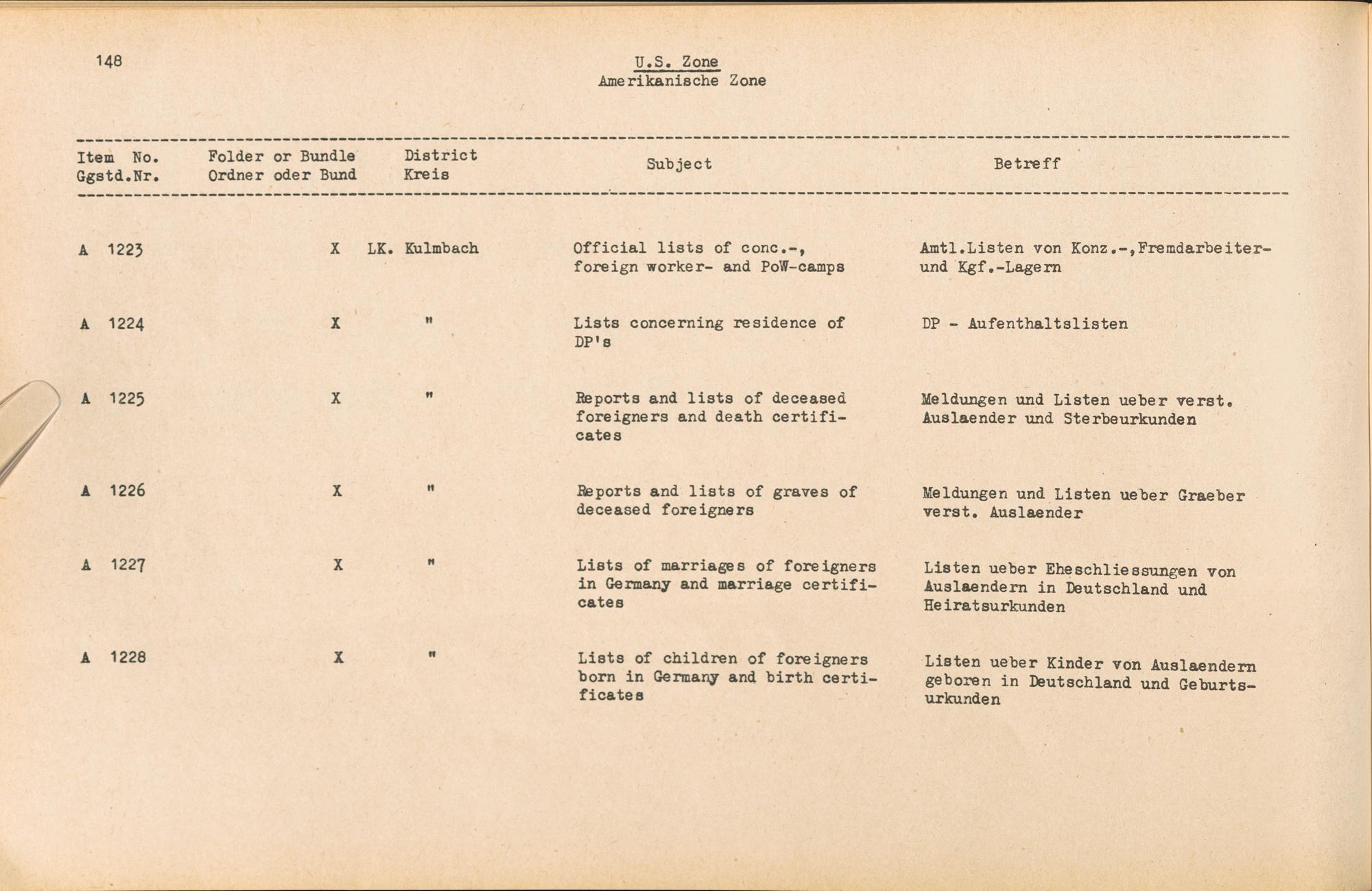 Catalogue of Records held by the International Tracing Service of the Allied High Commission For Germany at Arolsen : Vol. II