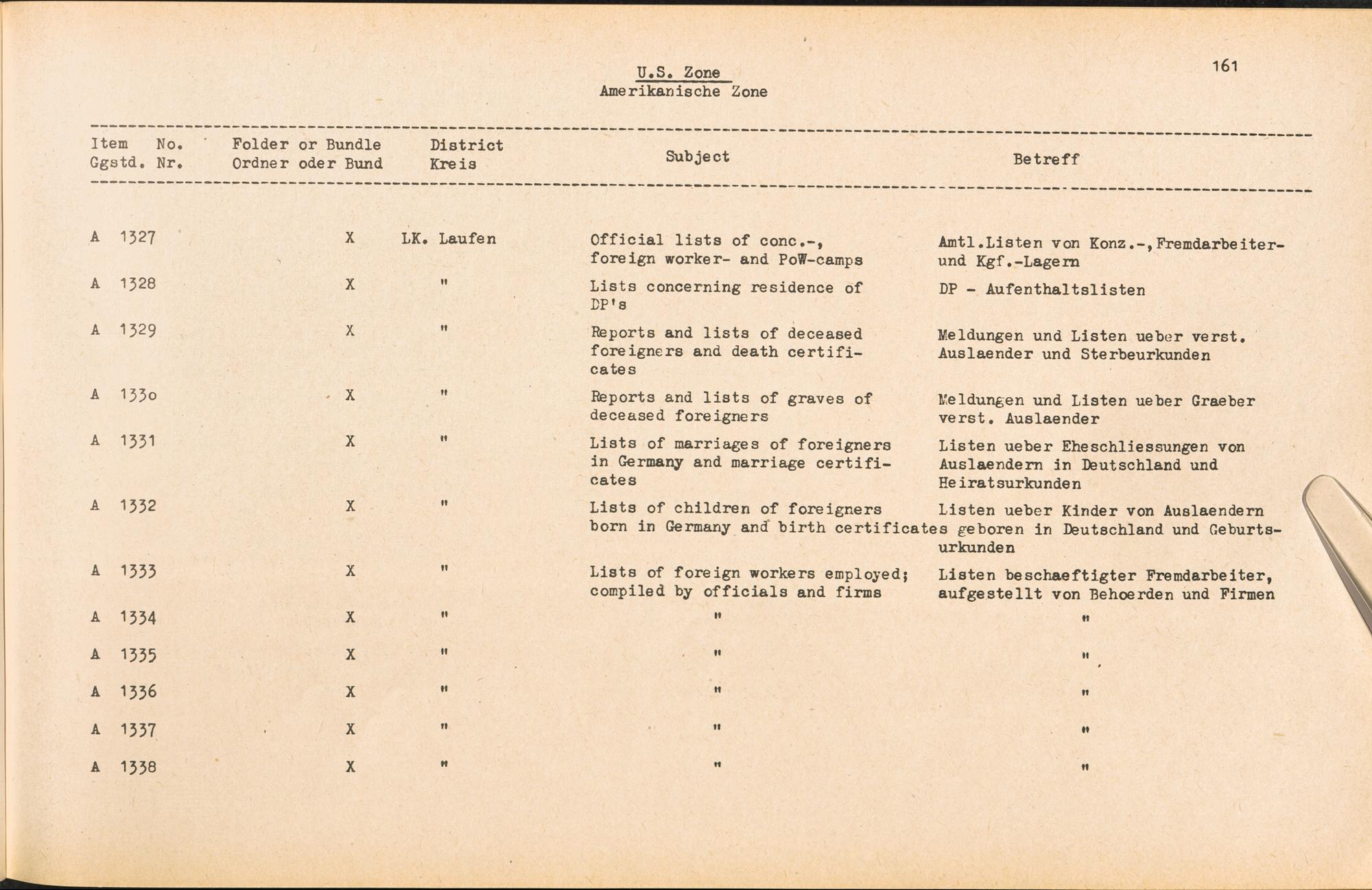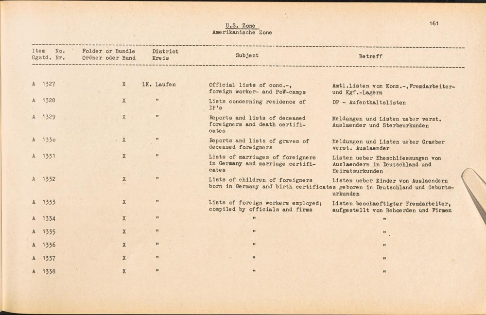 Catalogue of Records held by the International Tracing Service of the Allied High Commission For Germany at Arolsen : Vol. II