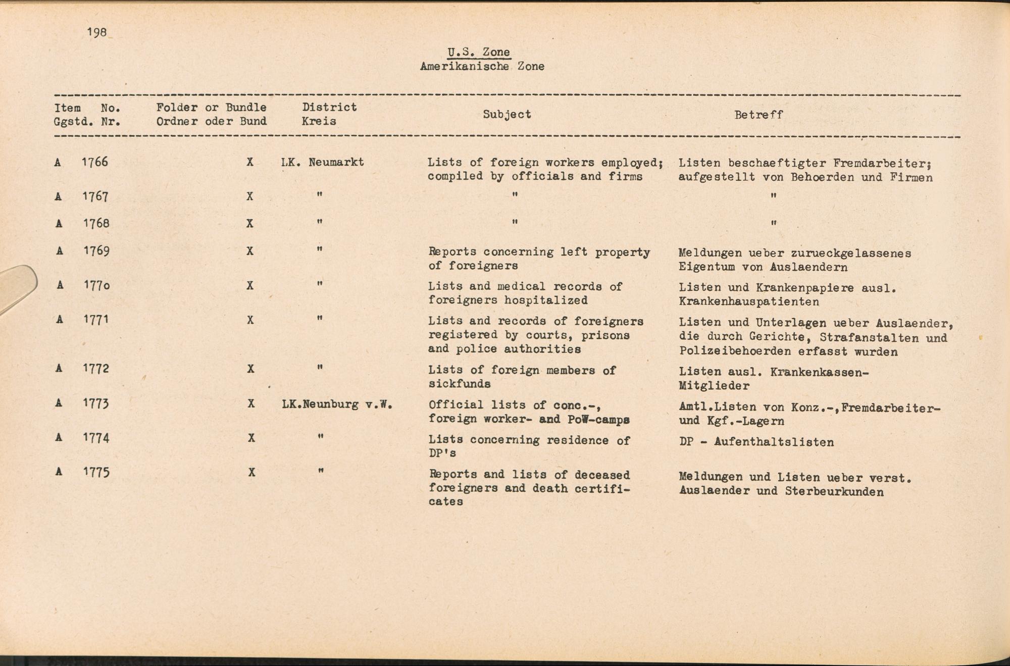 Catalogue of Records held by the International Tracing Service of the Allied High Commission For Germany at Arolsen : Vol. II