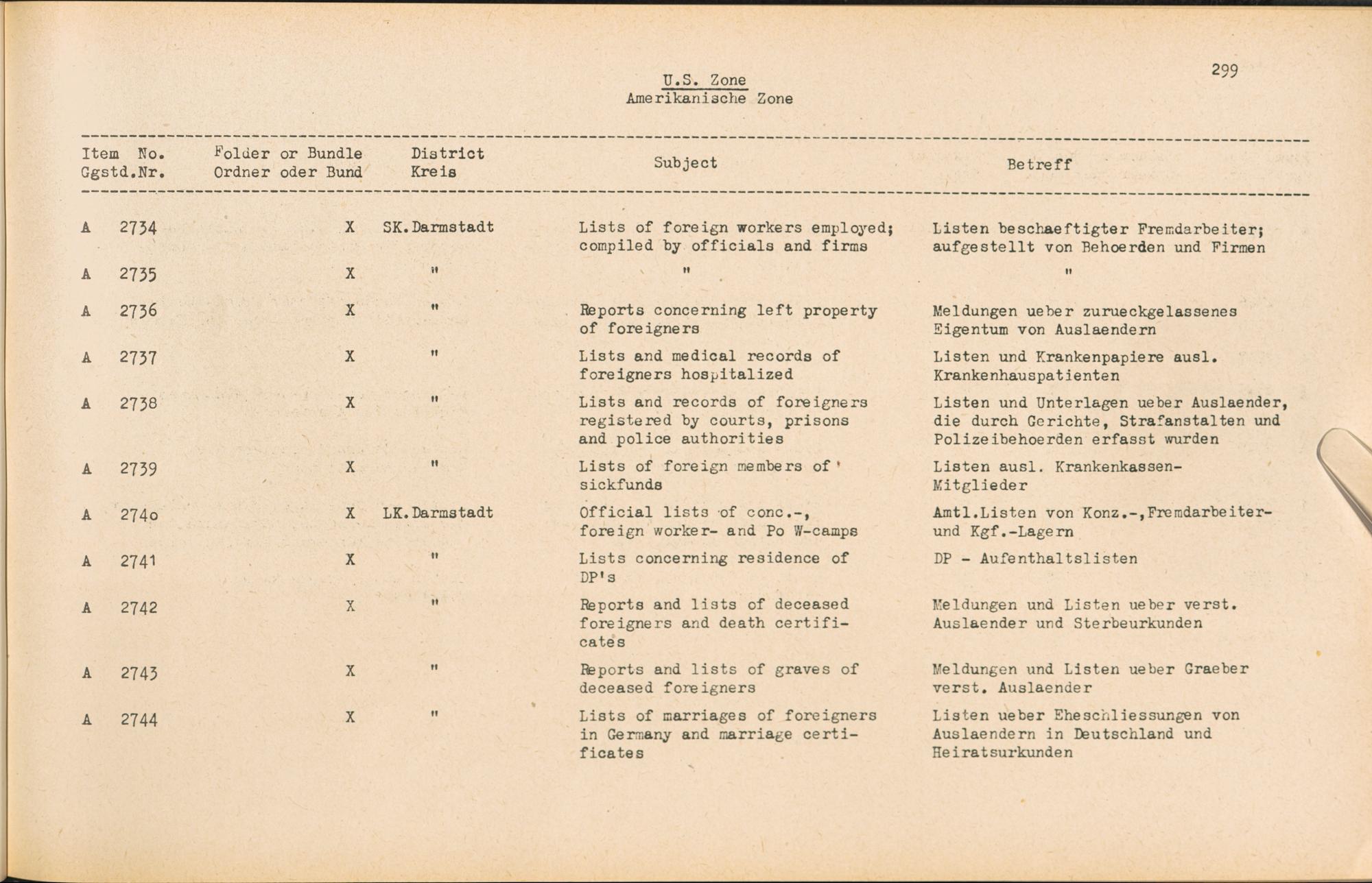 Catalogue of Records held by the International Tracing Service of the Allied High Commission For Germany at Arolsen : Vol. II