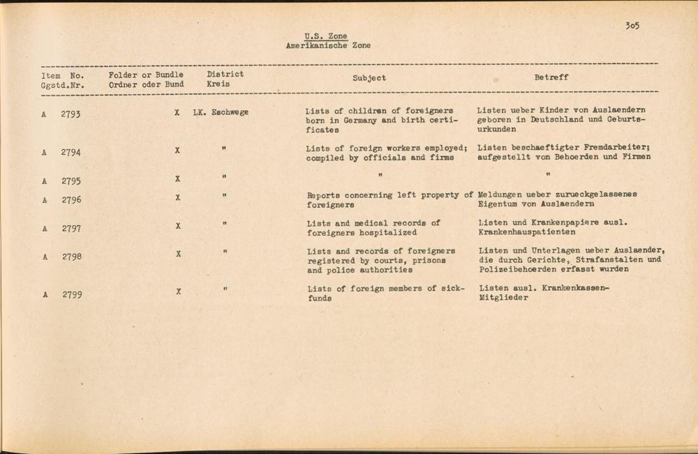 Catalogue of Records held by the International Tracing Service of the Allied High Commission For Germany at Arolsen : Vol. II