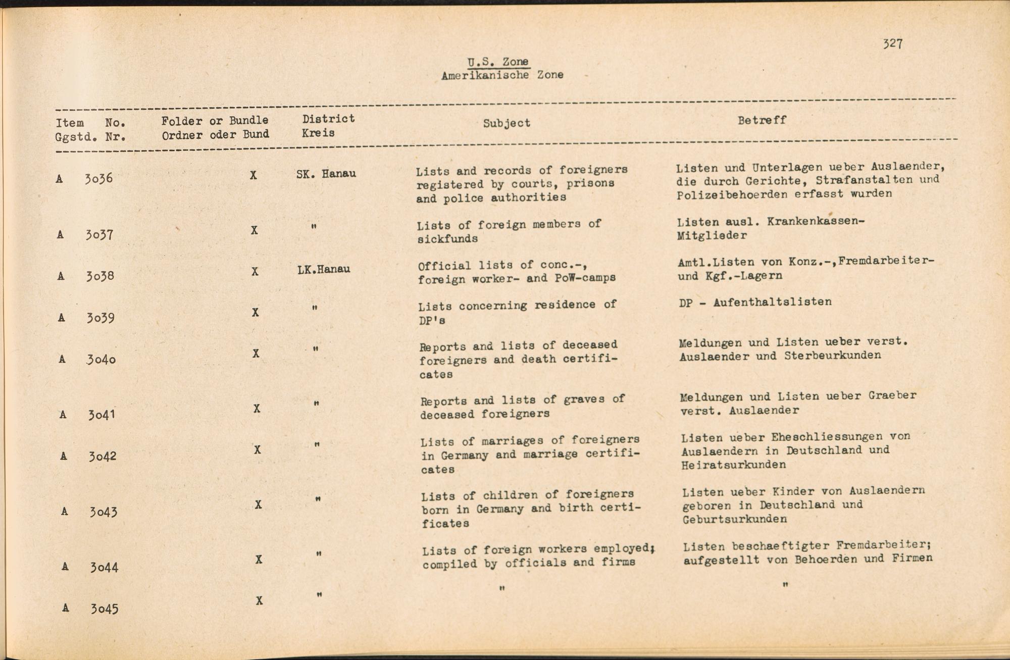 Catalogue of Records held by the International Tracing Service of the Allied High Commission For Germany at Arolsen : Vol. II
