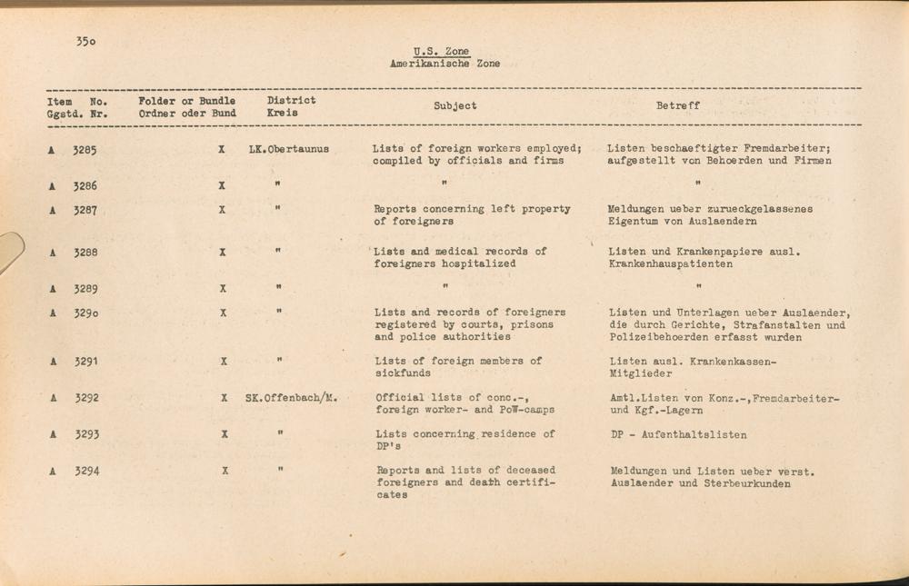 Catalogue of Records held by the International Tracing Service of the Allied High Commission For Germany at Arolsen : Vol. II
