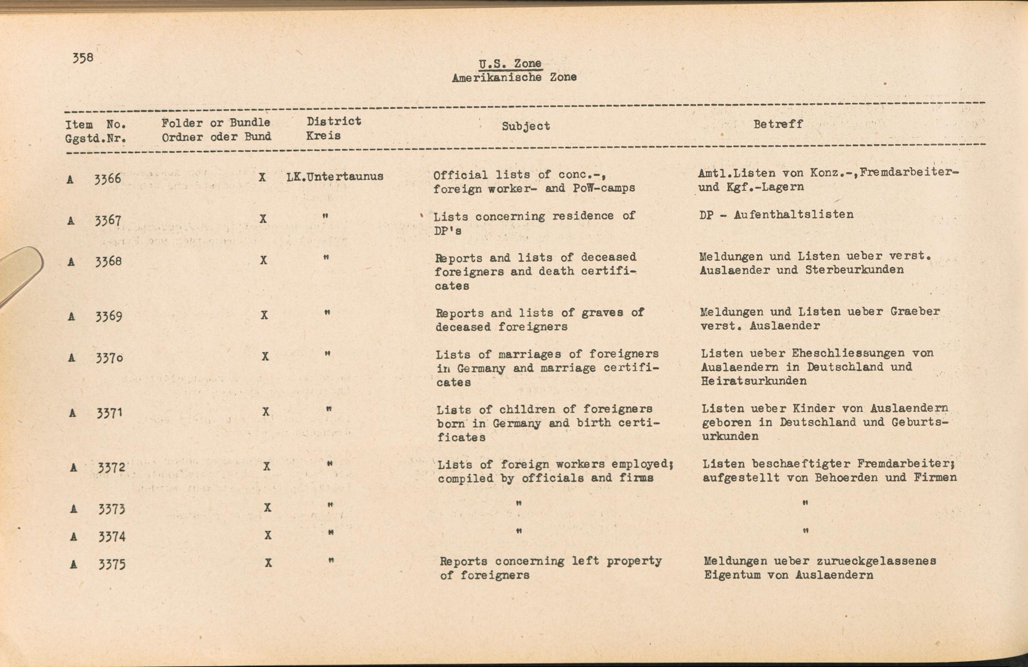 Catalogue of Records held by the International Tracing Service of the Allied High Commission For Germany at Arolsen : Vol. II