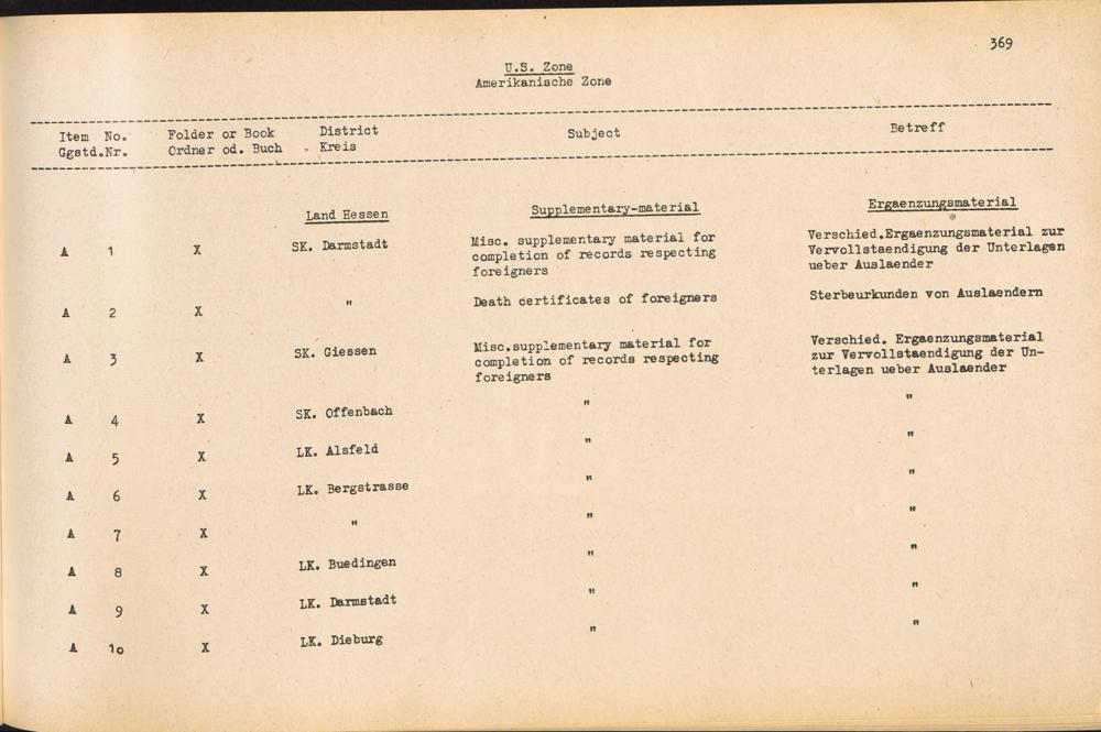 Catalogue of Records held by the International Tracing Service of the Allied High Commission For Germany at Arolsen : Vol. II