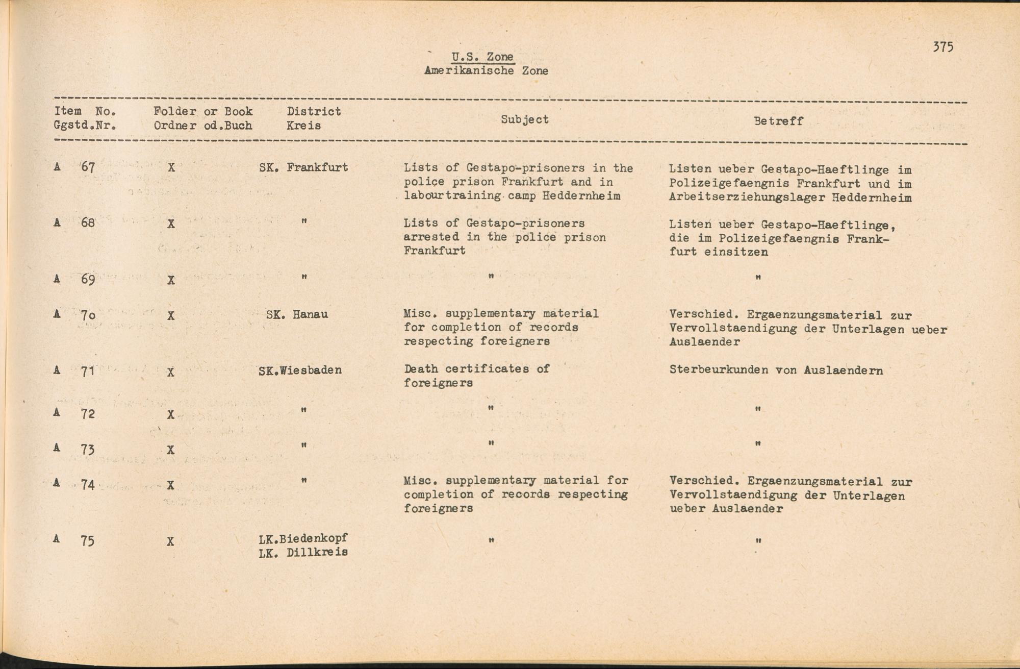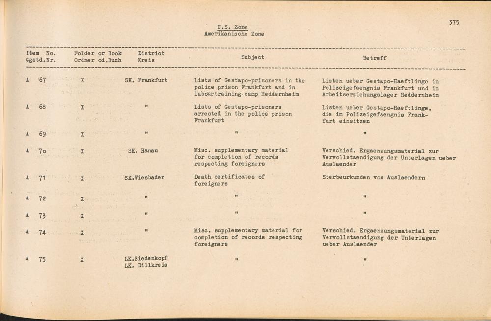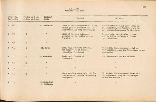 Catalogue of Records held by the International Tracing Service of the Allied High Commission For Germany at Arolsen : Vol. II