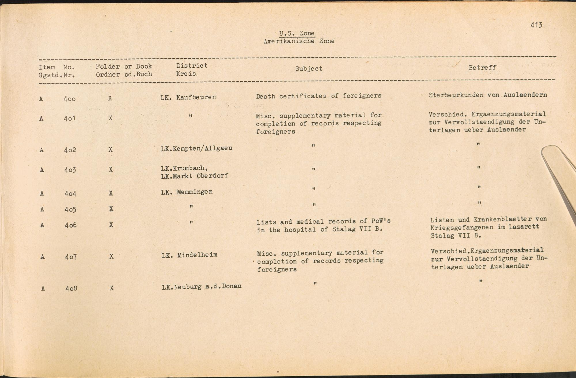 Catalogue of Records held by the International Tracing Service of the Allied High Commission For Germany at Arolsen : Vol. II