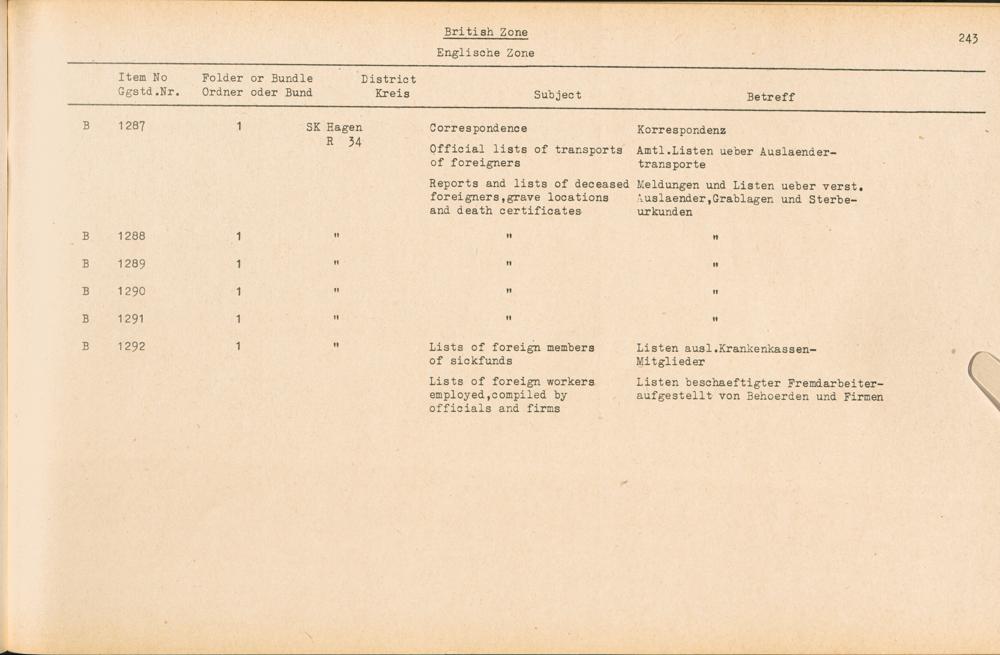 Catalogue of Records held by the International Tracing Service of the Allied High Commission For Germany at Arolsen : Vol. III