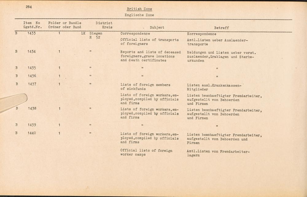 Catalogue of Records held by the International Tracing Service of the Allied High Commission For Germany at Arolsen : Vol. III