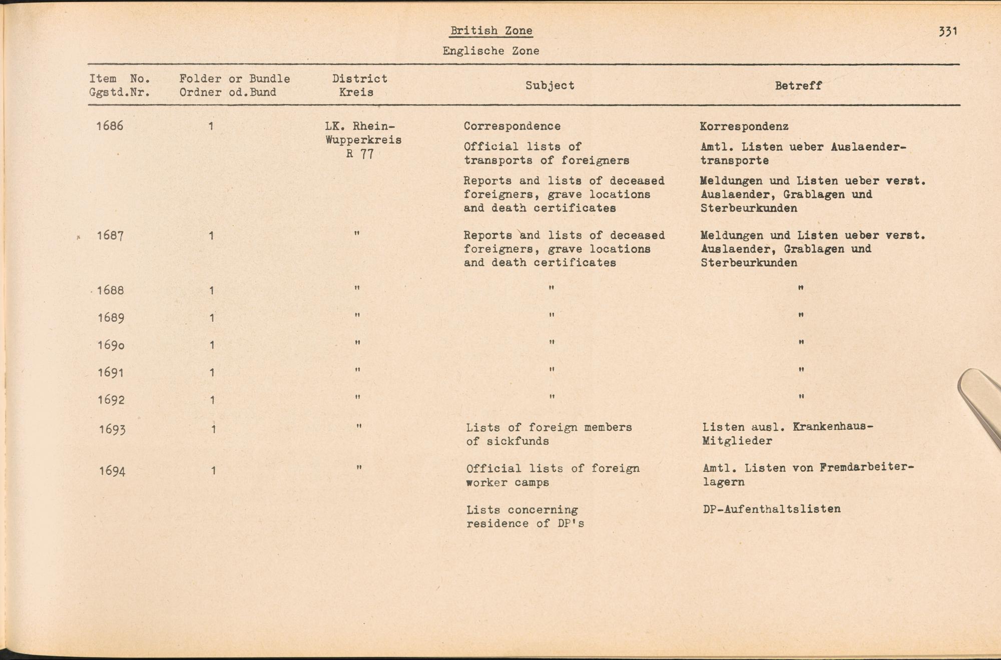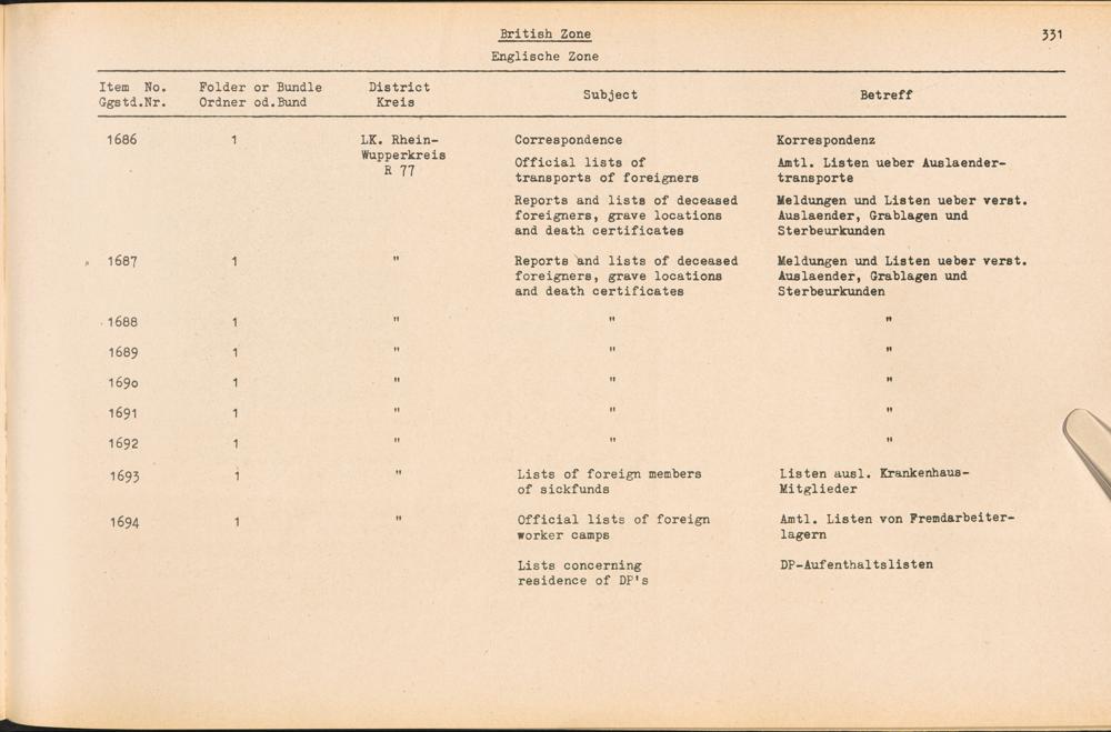 Catalogue of Records held by the International Tracing Service of the Allied High Commission For Germany at Arolsen : Vol. III
