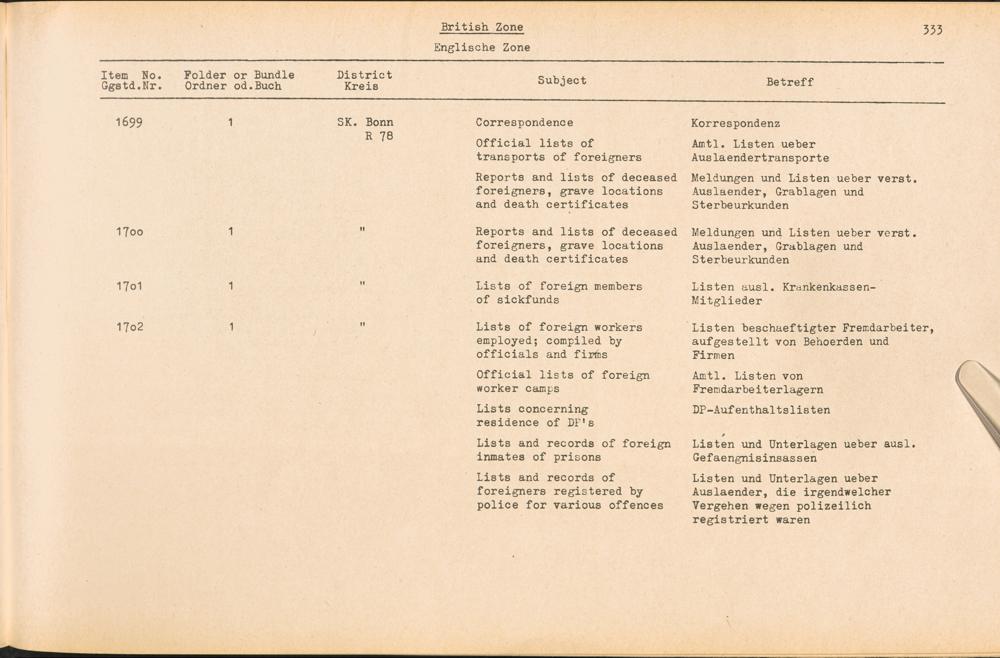 Catalogue of Records held by the International Tracing Service of the Allied High Commission For Germany at Arolsen : Vol. III
