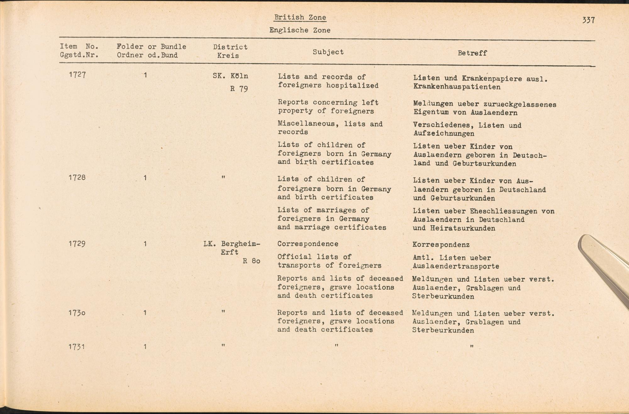 Catalogue of Records held by the International Tracing Service of the Allied High Commission For Germany at Arolsen : Vol. III