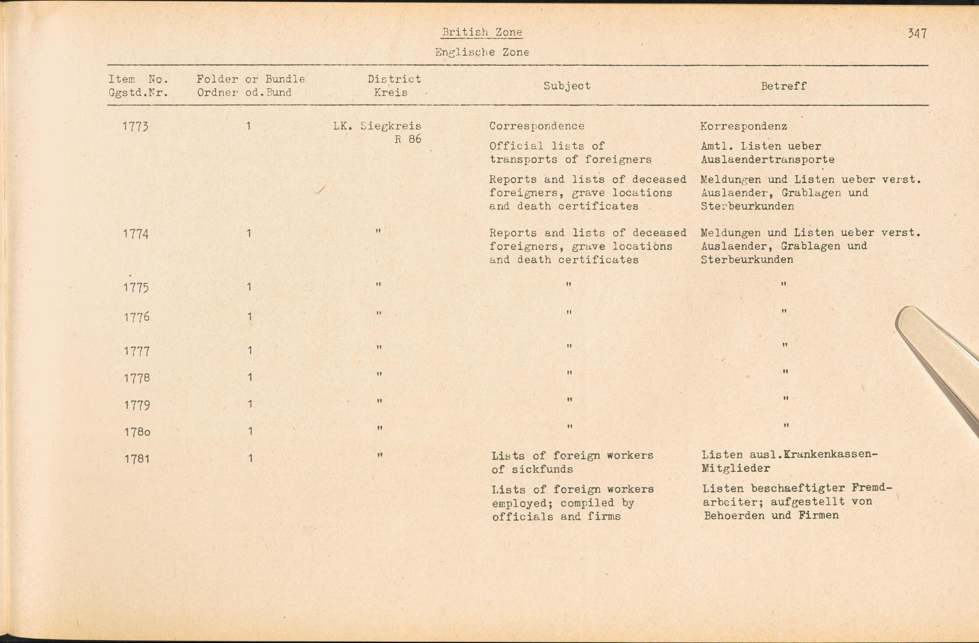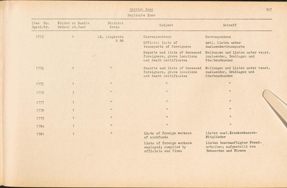 Catalogue of Records held by the International Tracing Service of the Allied High Commission For Germany at Arolsen : Vol. III