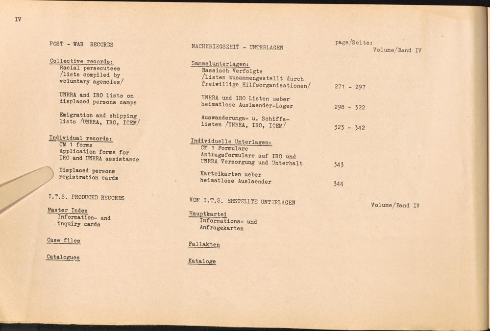 Band 4 (1954) Catalogue of Records held by the International Tracing Service of the Allied High Commission For Germany at Arolsen, Vol. IV