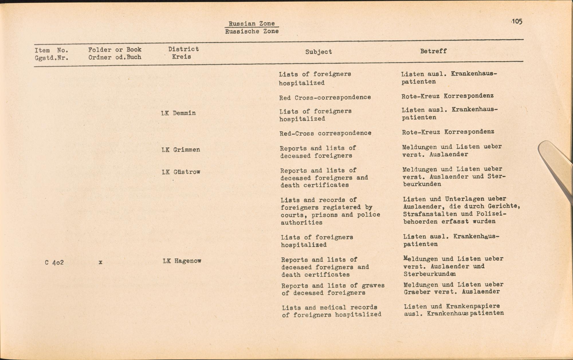 Band 4 (1954) Catalogue of Records held by the International Tracing Service of the Allied High Commission For Germany at Arolsen, Vol. IV