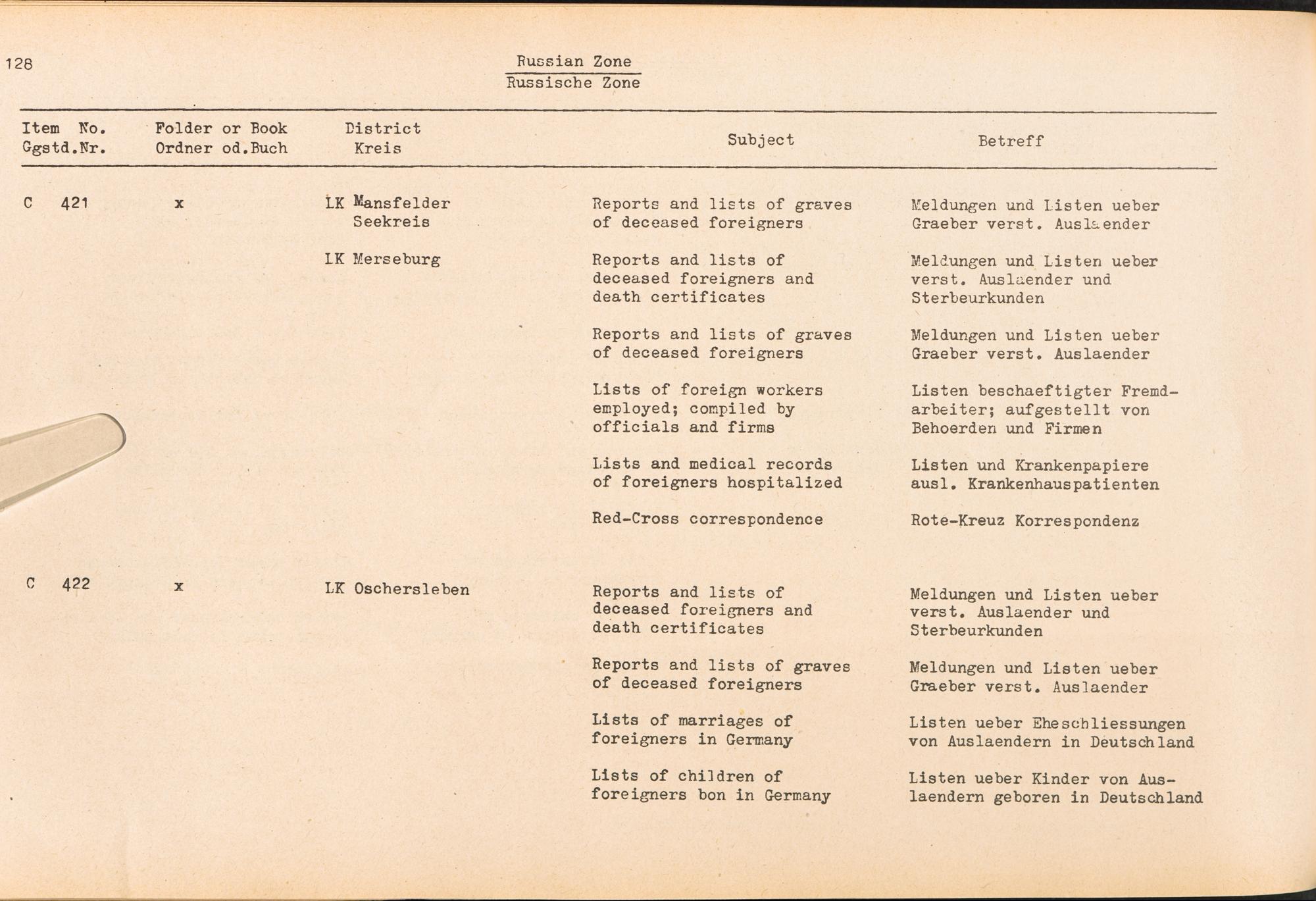 Band 4 (1954) Catalogue of Records held by the International Tracing Service of the Allied High Commission For Germany at Arolsen, Vol. IV