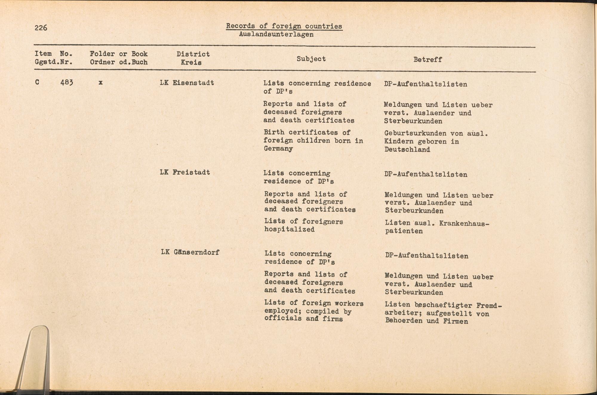 Band 4 (1954) Catalogue of Records held by the International Tracing Service of the Allied High Commission For Germany at Arolsen, Vol. IV